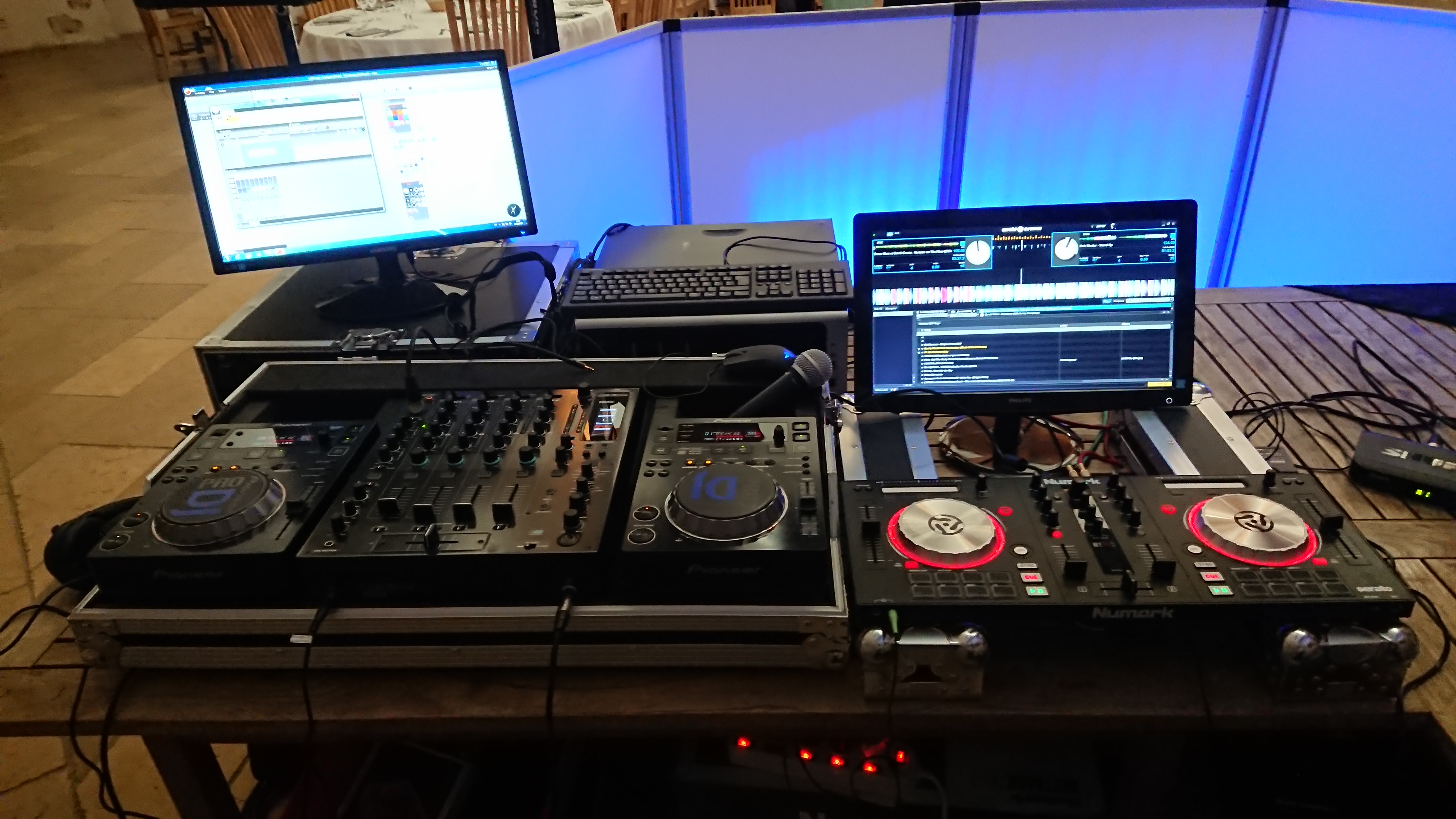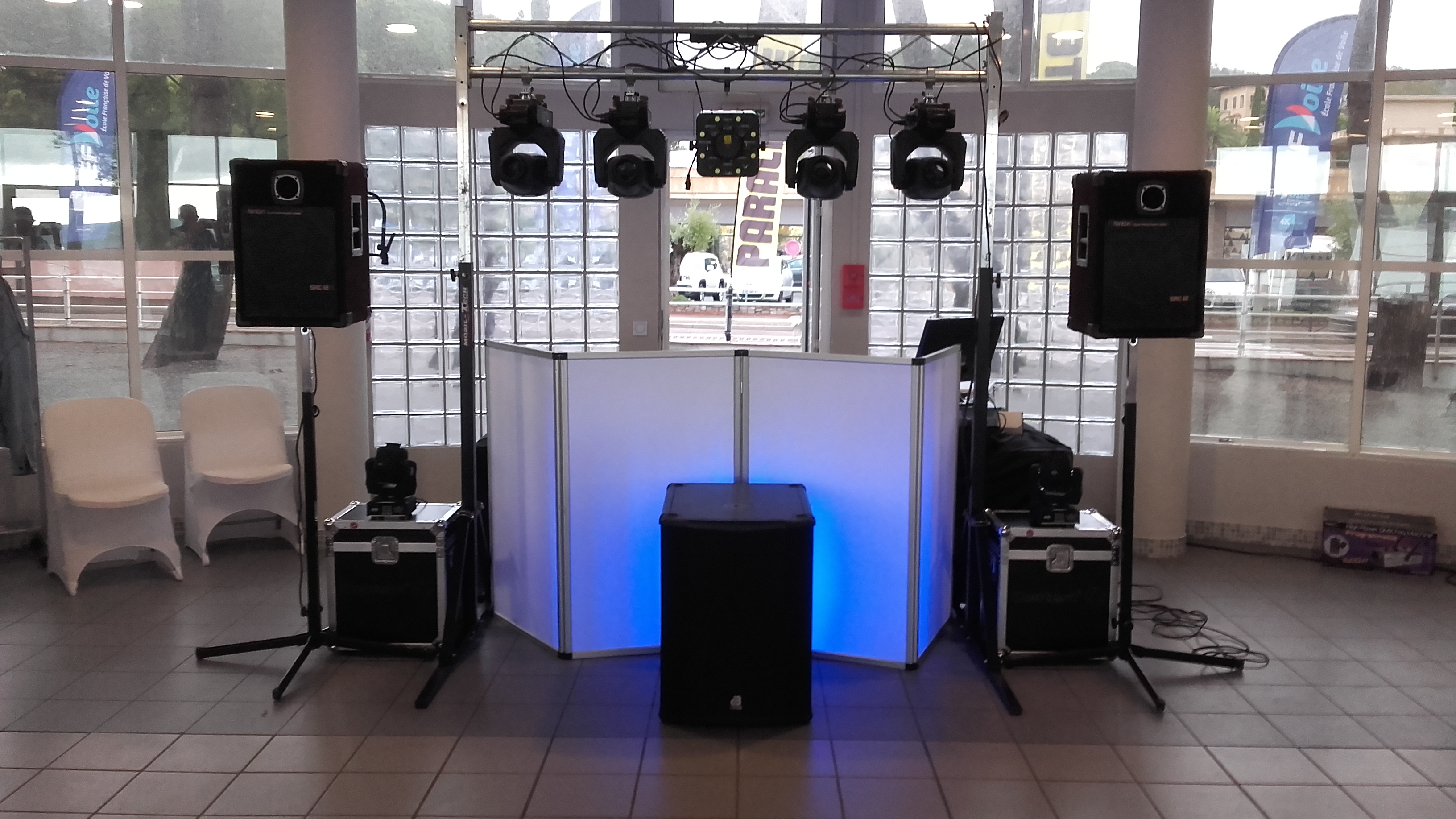 Matériel : Caisson Bass 1500W DB Système, 2 têtes de 1000w basse aigus EV ZLX 15, Contrôleur numérique RANE FOUR avec DJ SERATO - Micro HF et Filaire