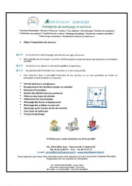 Une question pour ATOUTCLEAN SERVICES ?Expliquez vos objectifs et vos exigences ou demandez les informations supplémentaires dont vous avez besoin pour prendre une décision.