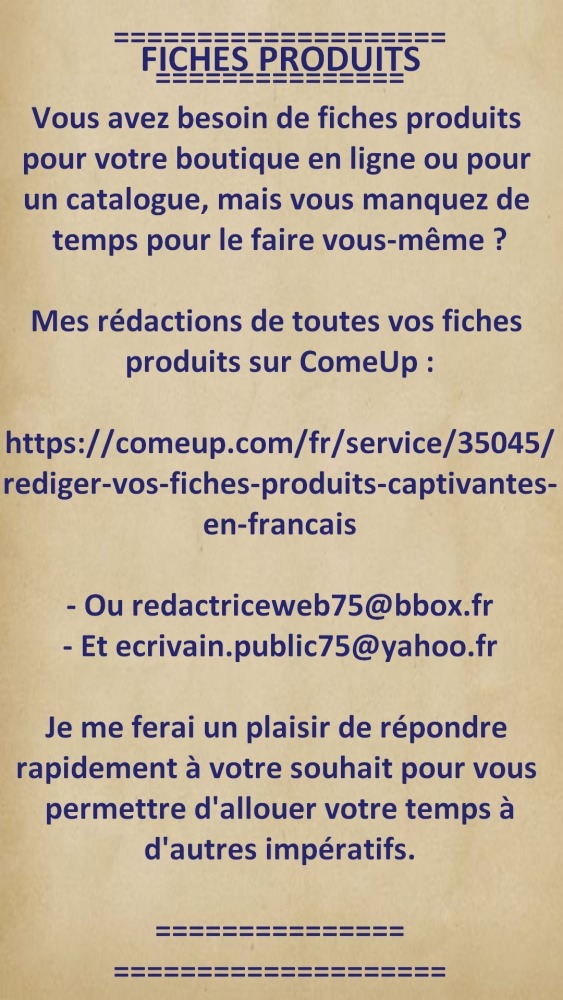 - Prestataires sur ComeUp sous le nom Marie_Rédaction,
